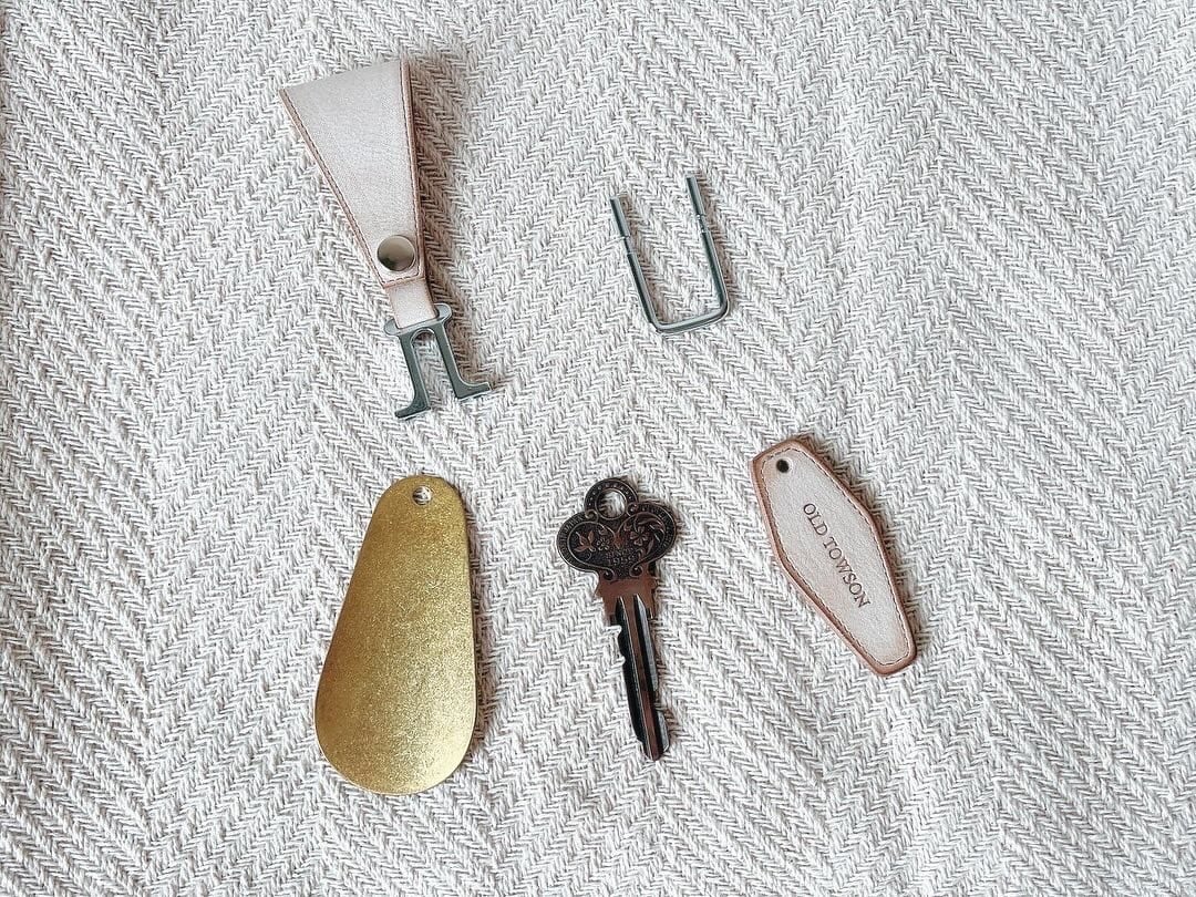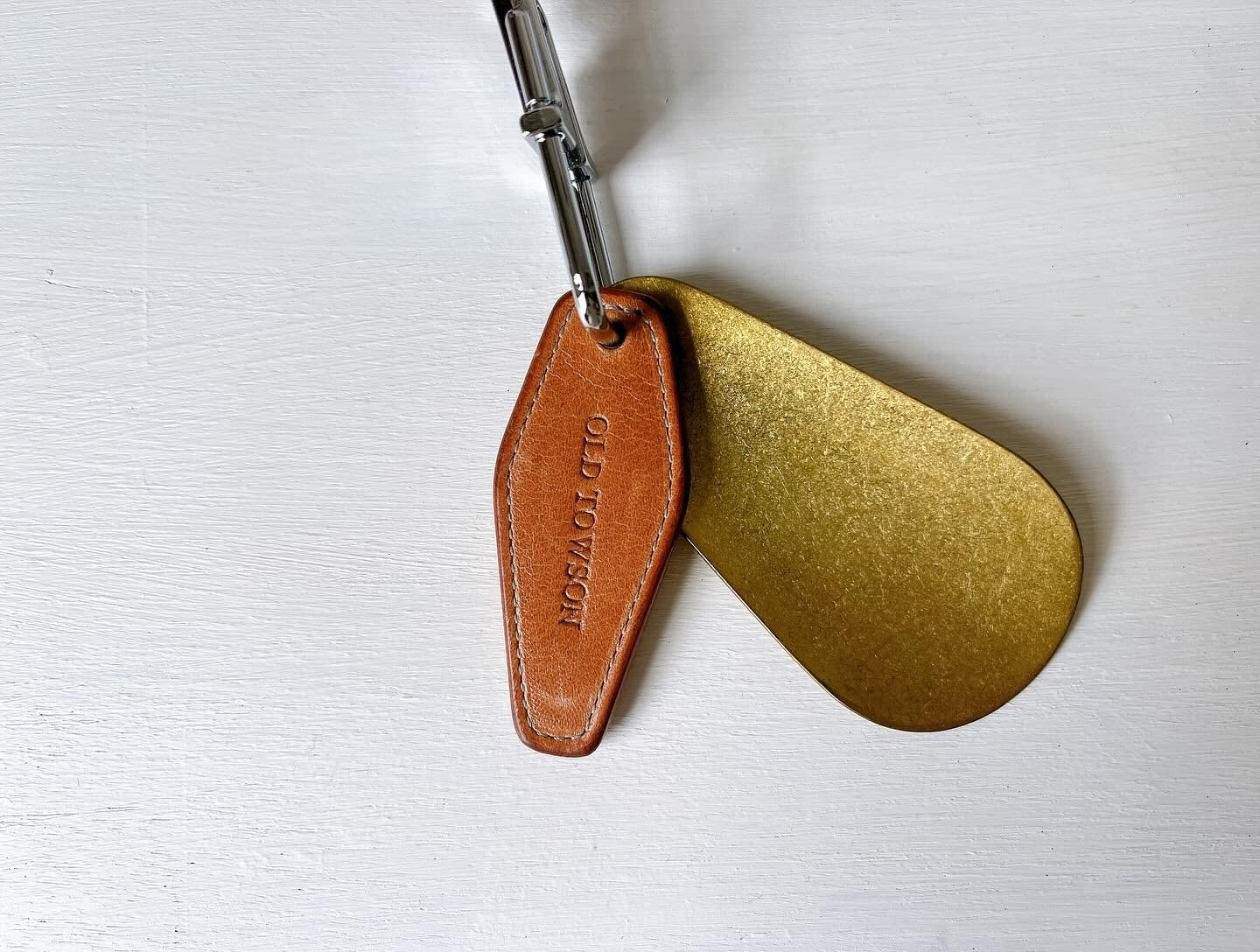 モーテルタグを模ったレザー製のタグと、どこかオリエンタルな雰囲気を持つ唯一無二の真鍮金具が組み合わさったOLDTOWSONオリジナルのキーホルダーです。
