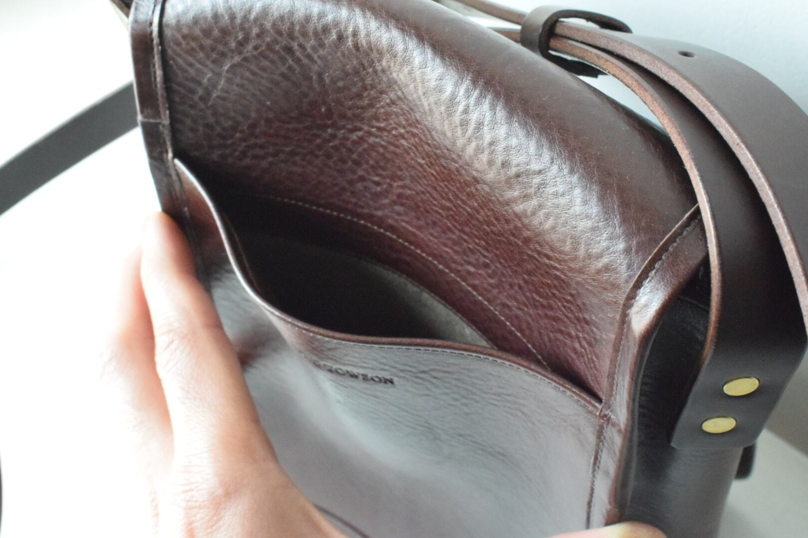 ショルダー部分は適度な厚みと柔らかさを併せ持つイタリア産のオイルレザーを使用し、使い始めから馴染みが良く、肩に掛けても疲れにくいです。