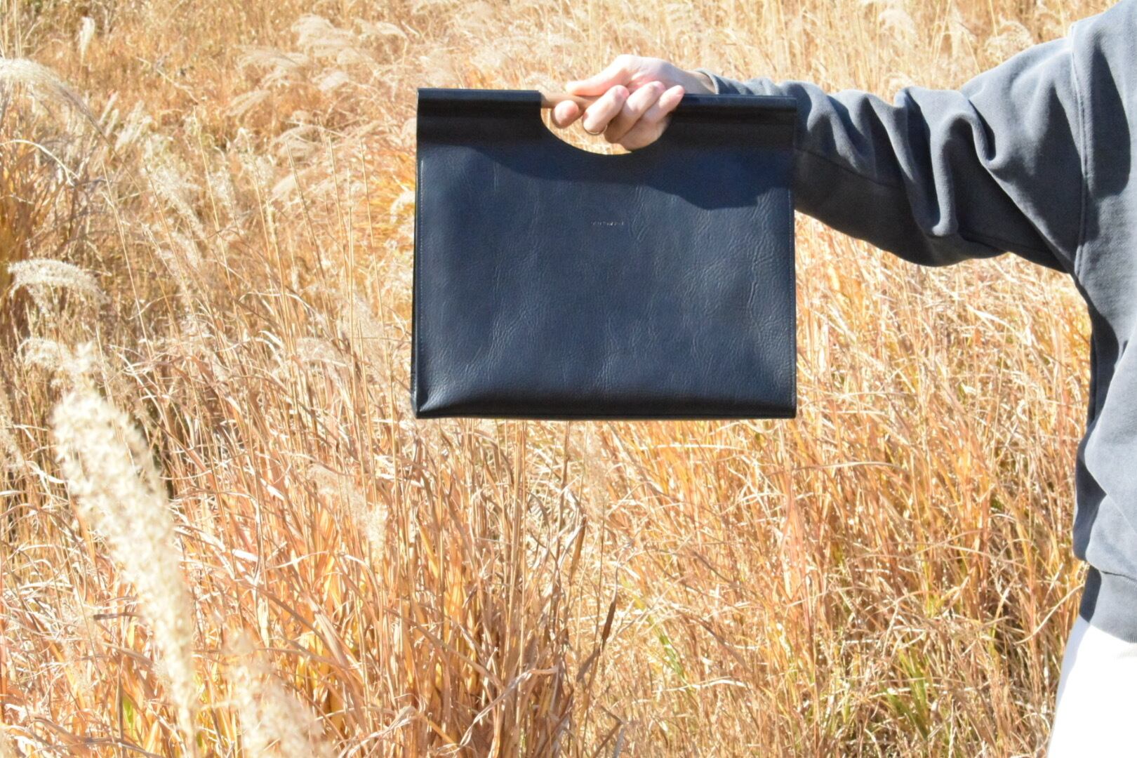 それぞれの素材の良さを引き立てるため可能な限り無駄を削ぎ落としたミニマルなデザインのバッグです。
